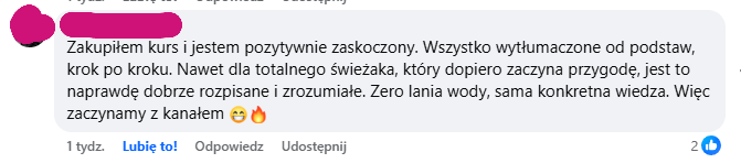 Po skutecznym dokonaniu płatności umowę o dostarczenie treści cyfrowych w postaci Kursu uważa się za zawartą między Kupującym a Sprzedawcą. Potwierdzenie zakupu Kupujący otrzyma również na adres e‑mail podany w formularzu zamówienia.